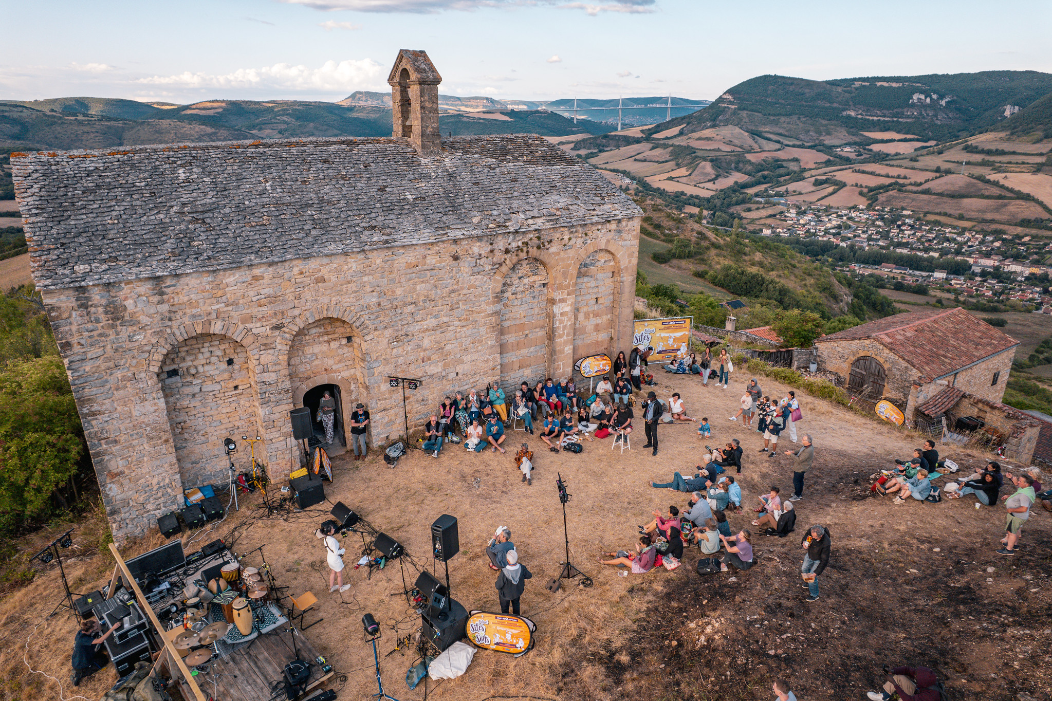 L’acoustique naturelle, la lumière du soir, l’architecture ou la roche composent une scénographie vivante.