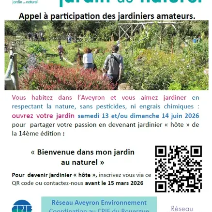 Cette opération se déroulera les samedi 13 et dimanche 14 juin 2026 et nous vous proposons d’ouvrir votre jardin au grand public afin d’échanger sur votre pratique d’un jardinage au naturel, respectueux de l’environnement à travers de multiples thématiques : sol, outillage, biodiversité, arrosage, variétés anciennes, soigner les plantes par les plantes, compostage, ou encore alimentation, climat etc …