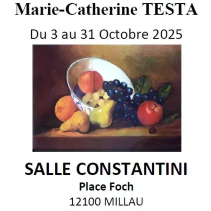 Marie-Catherine TESTA, originaire de Millau, est une artiste-peintre formée par des professeurs des Beaux-Arts de Toulouse.