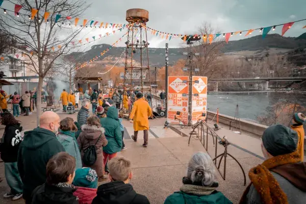 Attraper le feu du bout d’une fourchette, faire jaillir des étincelles, jouer avec la flamme… Ici, tout devient possible. La Kermesse transforme le quai en un laboratoire joyeusement déraisonnable où l’art forain flirte avec la cuisine et la pyrotechnie. Huit attractions décalées Le Décasseroleur, Le Brûle-Chandelle, Le Pique-Assiette, La Pêche à la flamme, Le Chocoleur… mêlent jeu, feu et gourmandise. Avec son humour mécanique et ses saveurs à déguster, la Kermesse détourne avec espièglerie les codes des arts forains pour un moment spectaculaire et familial.