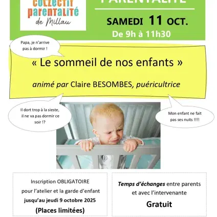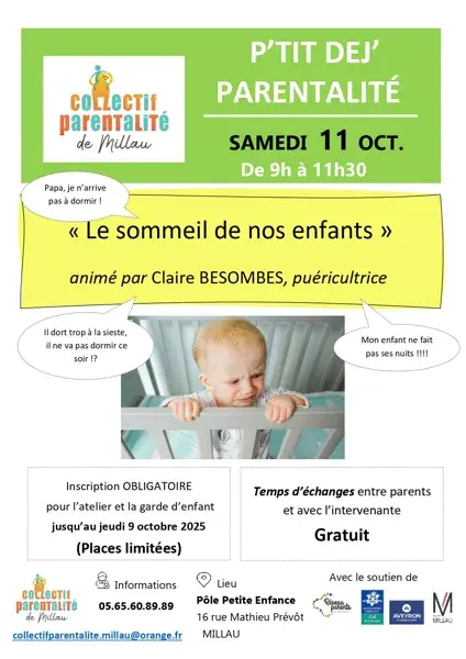 Le Collectif Parentalité de Millau vous propose un nouveau p'tit déj' parentalité à destination des parents d'enfants de 0 à 7ans, le samedi 11 octobre 2025 de 9h à 11h30.