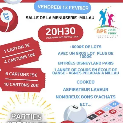 L’APE Jules Ferry a le plaisir de vous inviter à une grande soirée loto conviviale et familiale