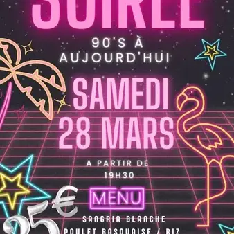 Soirée dansante avec repas et animée par DJ miss Angel ! Thème années 90 à aujourd'hui ! Début de soirée à partir de 19H30 à l'Espace Culturel