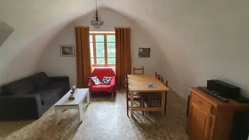 Situé à Mostuéjouls, au premier étage d'une maison, cet appartement de 60 m² peut accueillir jusqu'à 4 personnes grâce à une chambre et un salon avec couchages supplémentaires.